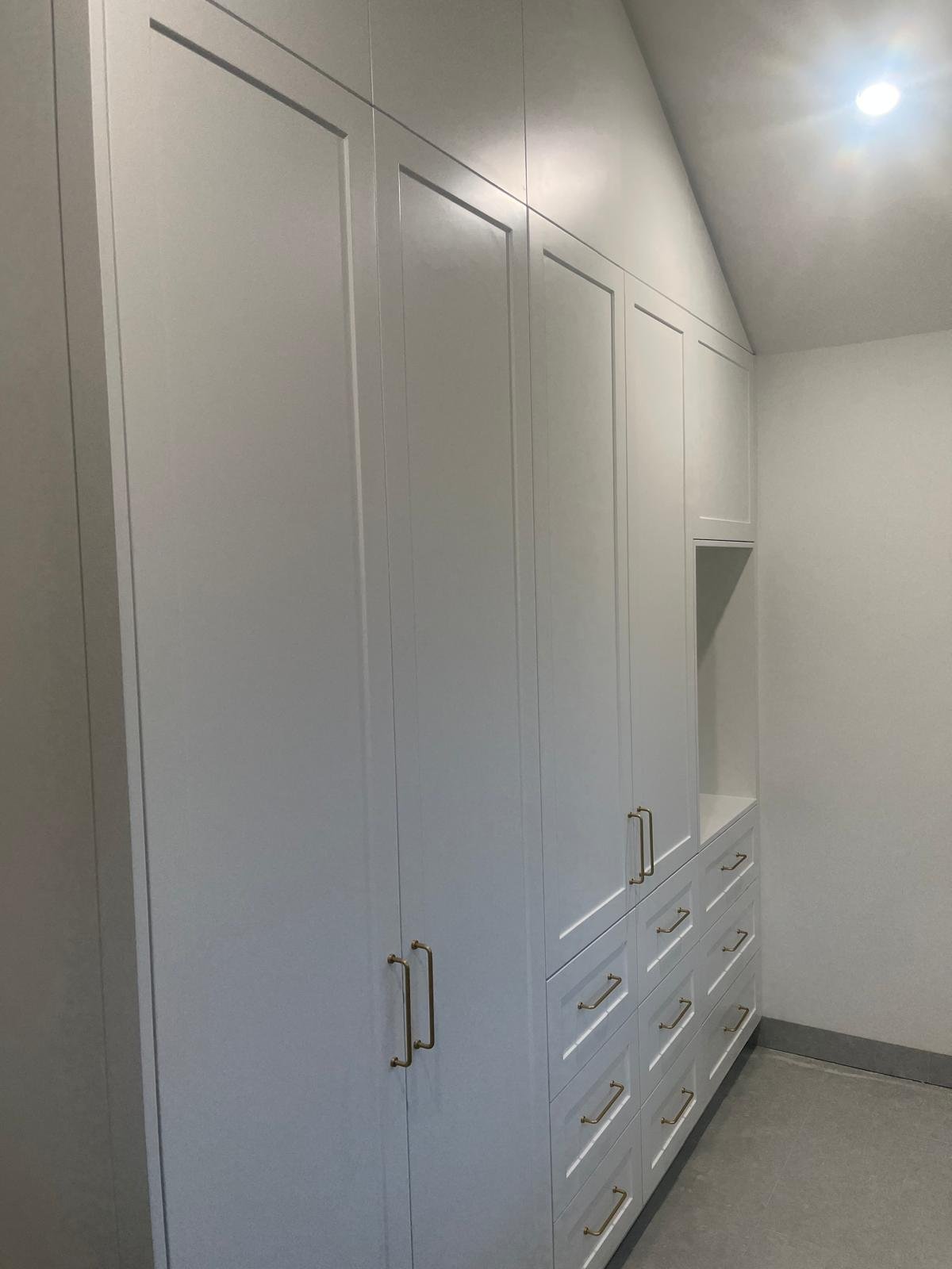 At Modern Design Kitchens, Wardrobe design and installation services are crucial to help you maximise your storage space in style. Our team of skilled professionals will work with you to create a customised wardrobe solution that meets your unique needs and preferences, whether you’re looking for a modern, minimalist design or a traditional, classic style. We use high-quality materials and finishes to ensure your wardrobe is not only functional but also durable and visually appealing.